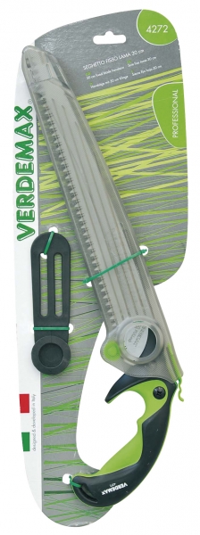 Profesionální ruční pilky s pevnou čepelí vyrobené z kvalitní pochromované oceli, což zvyšuje odolnost vůči korozi. Třístranně naostřené lichoběžníkové zuby umožňují velice rychlé a efektivní řezání dřevěných vláken. Speciální Verdemax rukojeť s ochranou prstů, ochranné ABS pouzdro.