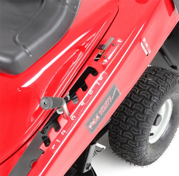 Díky poloměru otáčení pouhých 540 mm se s traktorem VeGA V12577 MECH 3in1 skvěle manipuluje a široký nůž umožňuje dosekávání až do krajů plotů, keřů a stromků. Výška sečení je snadno nastavitelná v rozpětí 20 - 90 mm a posečená tráva je zachytávána do koše o objemu 200 litrů nebo vyhazována bočním výhozem a též je umožněno i mulčování. Díky celkové délce pouhých 1550 mm je zajištěna snadná skladovatelnost.