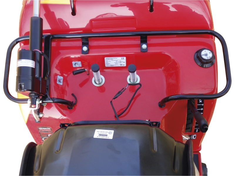 - Nadstandardní výbava - masivní trubková konstrukce kolem sedadel poskytuje jistotu a bezpečí při sekání svažitých terénů a usnadňuje manipulaci se strojem. Uzávěr nádrže s přehledným palivoměrem.