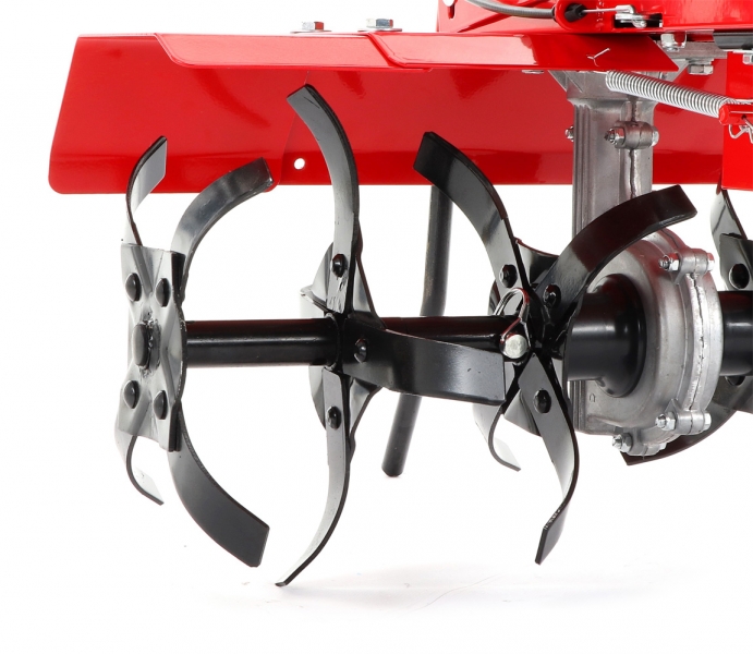 Tento kultivátor se pyšní robustní konstrukcí a odolnou kovovou převodovkou, což zajišťuje jeho dlouhou životnost i při intenzivním používání. Ergonomická rukojeť a přední madlo usnadňují manipulaci a poskytují vynikající ovladatelnost. Nastavitelná hloubka kultivace až do 26 cm umožňuje přizpůsobit stroj různým druhům půdy, zatímco speciálně tvarované nože zajišťují důkladné rozmělnění zeminy.