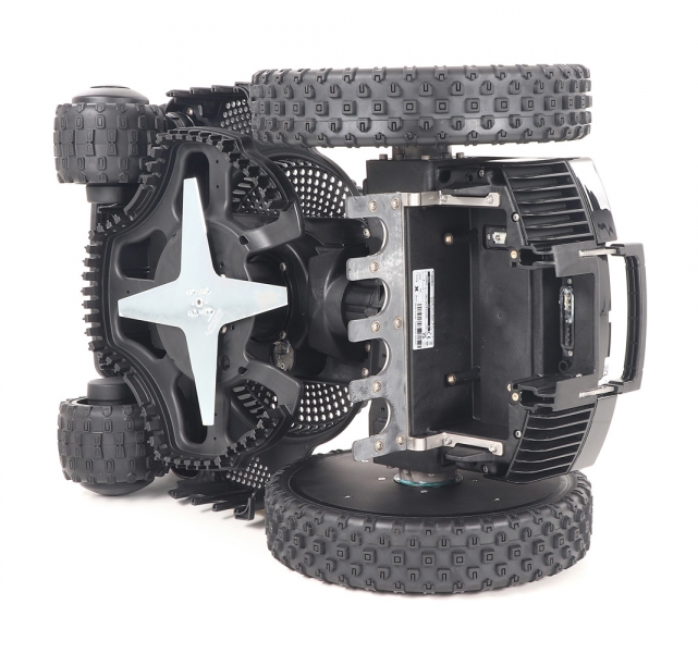 Dále je model navržen pro dvojité kolo, což umožňuje vyšší stupeň stability a přilnavosti při nižším tlaku na trávník. Dále je možné nasadit trnové kolo, který pomáhá pohybu robota přes vlhká místa a na svazích. To znamená, že zahrada bude bez překážek a můžete si naplno užívat svůj venkovní prostor, který je nyní dokonale upravený a zastřižený.